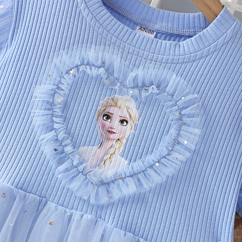 DRESS 2-10 Tahun Gadis Putri Beku Elsa Pink Berkedip Renda Gaun Ruffle Lengan untuk Anak Perempuan Gaun Anak