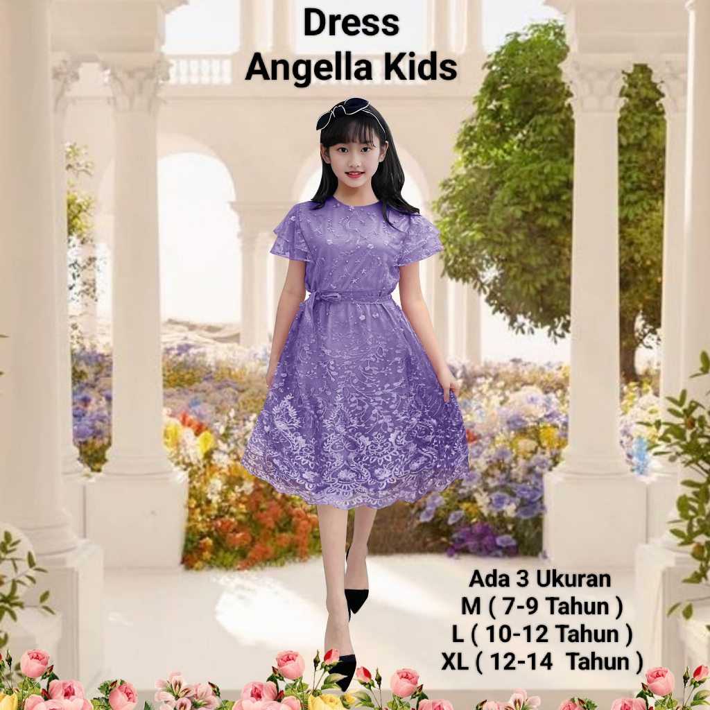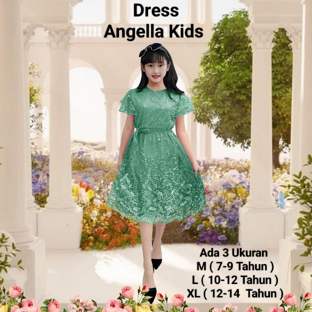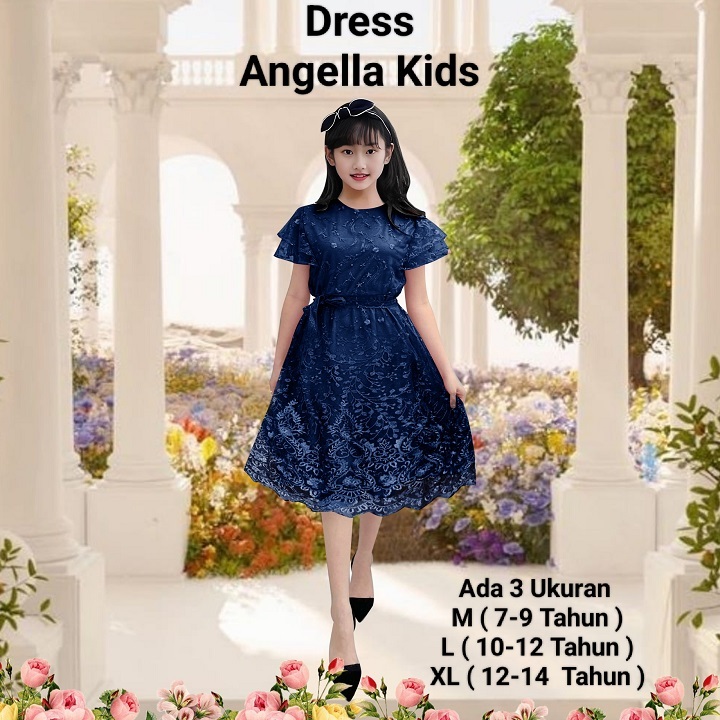 DRESS Dress Anak Perempuan Abg Terbaru Koreaan Style Full Brokat Mutiara/Dress Angella Kids 7-14 Tahun Gaun Anak