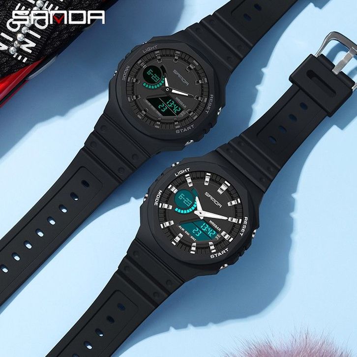 SANDA 6016 Jam Tangan Pria Wanita Digital Sport EL Backlight Tali Rubber Anti Air CURRENOS