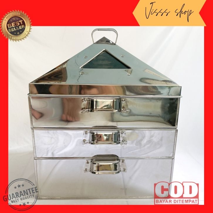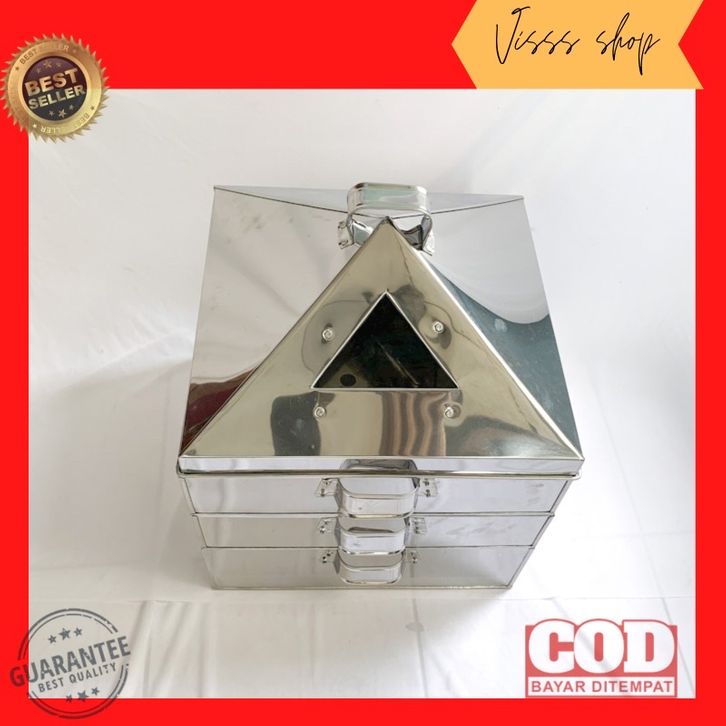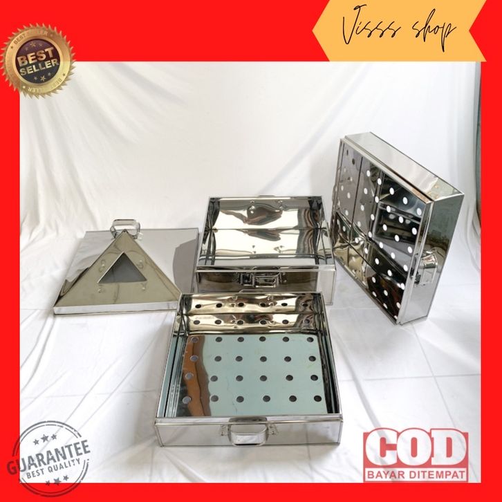 Panci Kukus Klakat Susun 3 Stainless Kotak Kukusan Steamer Dimsum Kue Bolu Kukus Muffin