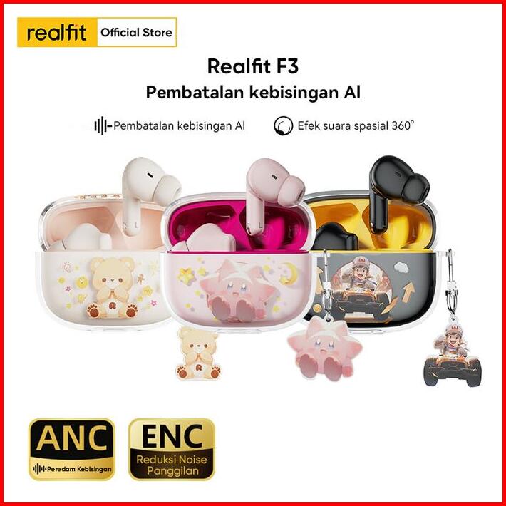 Noise Cancellingrealfit F3 Tws Earphone Nirkabel Anc -38db Bluetooth 5.4 Audio Suara Berkualitas Tinggi Dengan Super Bas