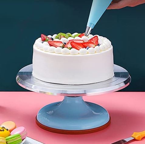 PREMIUM MEJA PUTAR KUE ROTARY CAKE LAZY SUSAN STAINLESS 30 CM - UN9U
