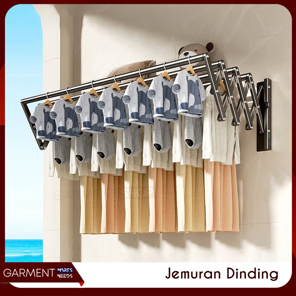 JEMDING - Jemuran Baju Dinding Tarik Lipat Rak Jemuran Pakaian Bedcover Multilayer Stainless Steel Anti Karat Minimalis