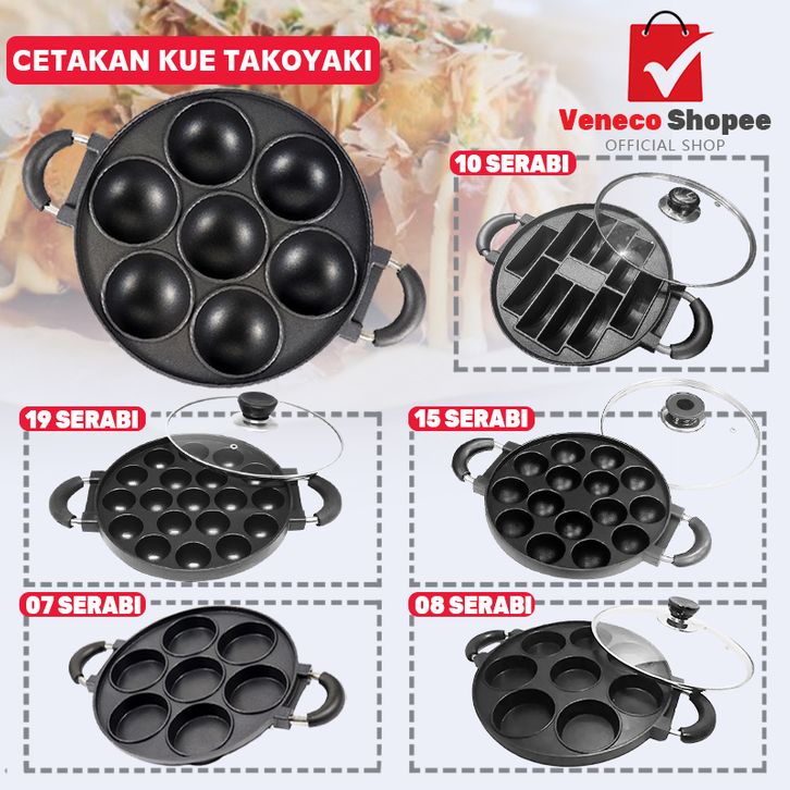 Cetakan takoyaki 15 Lubang + tutup kaca Cetakan Takoyaki 19 Lubang Cekung
