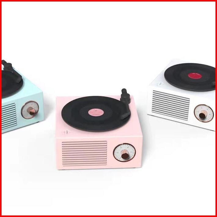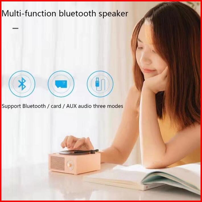 Speaker Retro Vinyl Record Player Wireless Bluetooth Subwoofer Audio Cerdas Hadiah Pacar Komputer Black