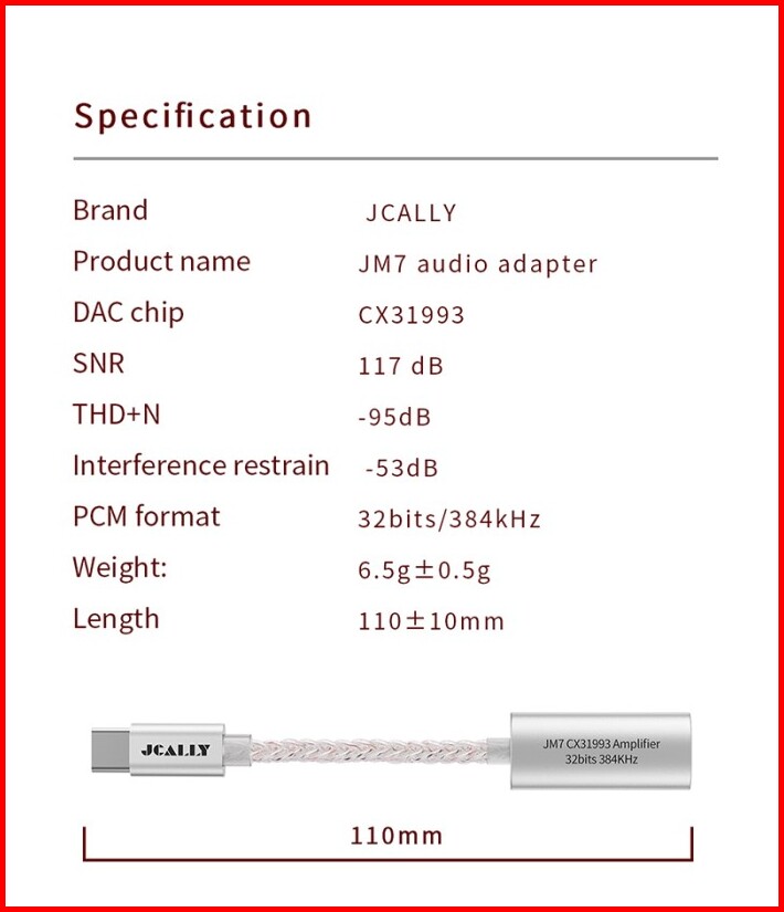Jcally Jm7 Hires Dac Adapter Audio Cx31993 Usb Type C To Jack 3.5mm