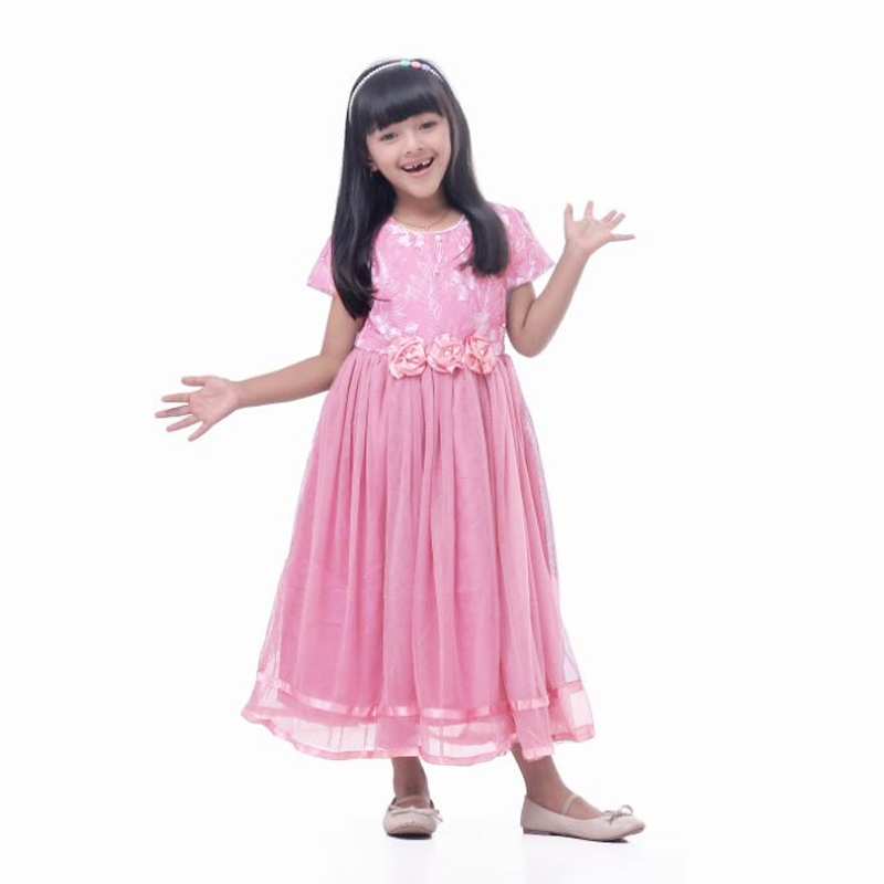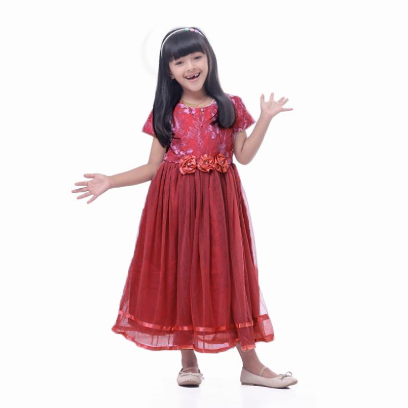DRESS Dress Pesta Anak Triple Flowery Gaun Anak