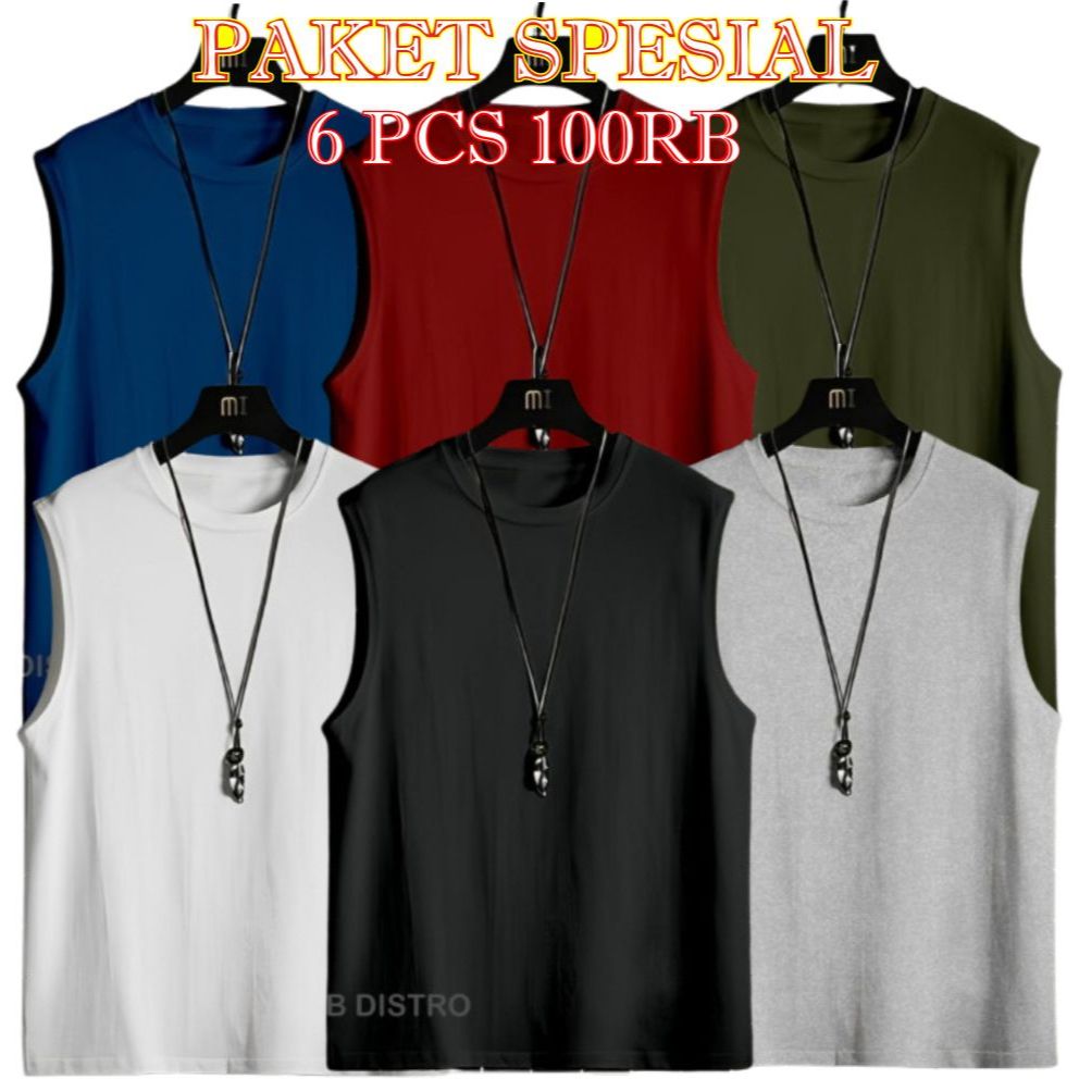 Paket Hemat Kaos Singlet Lekbong Distro Paketan 6 Pcs 100rbu Singlet Santai Gym Cowok