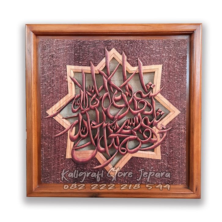 Kaligrafi kayu Syahadat Ukir jepara Hiasan dinding dekorasi r. Tamu Aesthetic 75x75