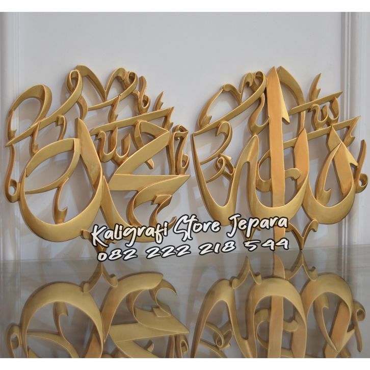 Hiasan Dinding Kaligrafi Allah Muhammad kayu Jati Ukiran jepara Pajangan R. Tamu .ern 30x30