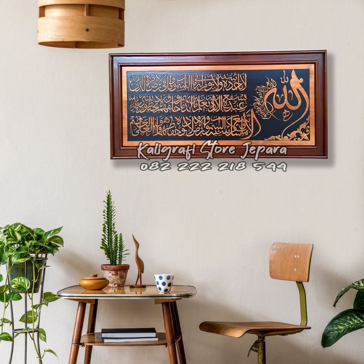 kaligrafi ayat kursi timbul kayu jati perhutani ukir jepara untuk hiasan dinding Aesthetic 120x60