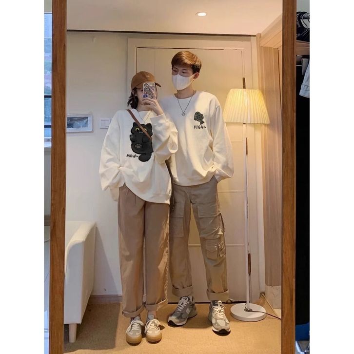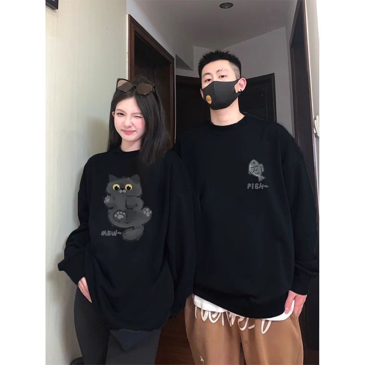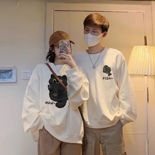Kucing Makan Ikan Sweater Couple Crew Neck /Sweater Couple Crew Neck/Sweater Korea/Unisex