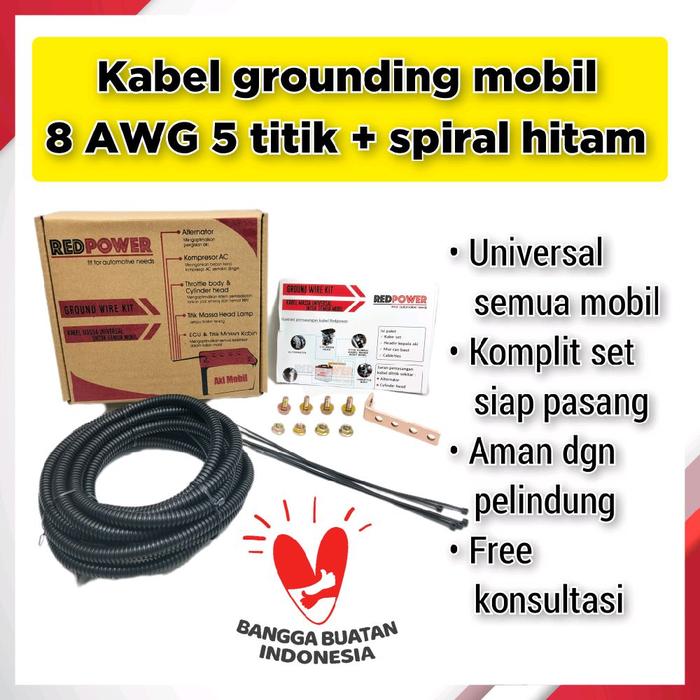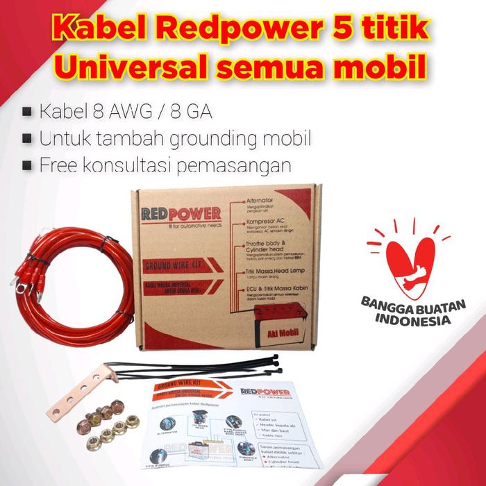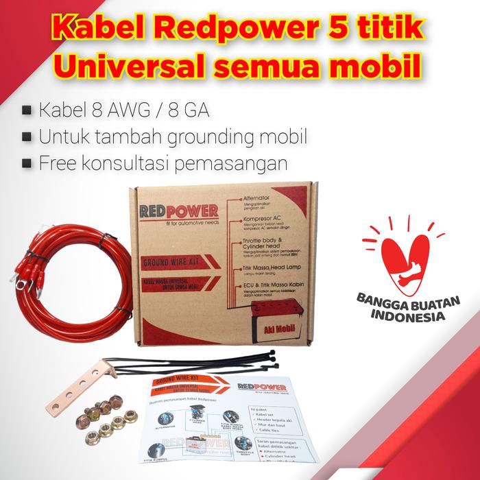 Redpower 8 awg Merah Hitam 5 titik Ground Wire Kit Kabel Grounding Mobil