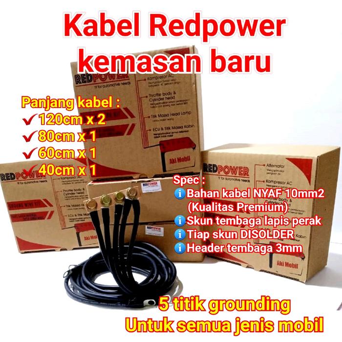 Redpower kabel grounding mobil NYAF 10mm hitam 5 titik