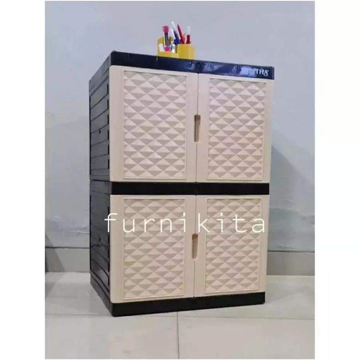 GRATIS ONGKIR LEMARI PAKAIAN PLASTIK TABITHA SUSUN 3 KACA KUNCI