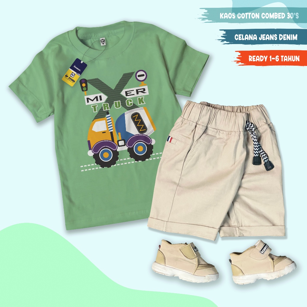 SETELAN Baju AnakSetelan Anak Kaos Cotton Combed Celana Twill Strecht, Lentur, Tebal, Lembut
