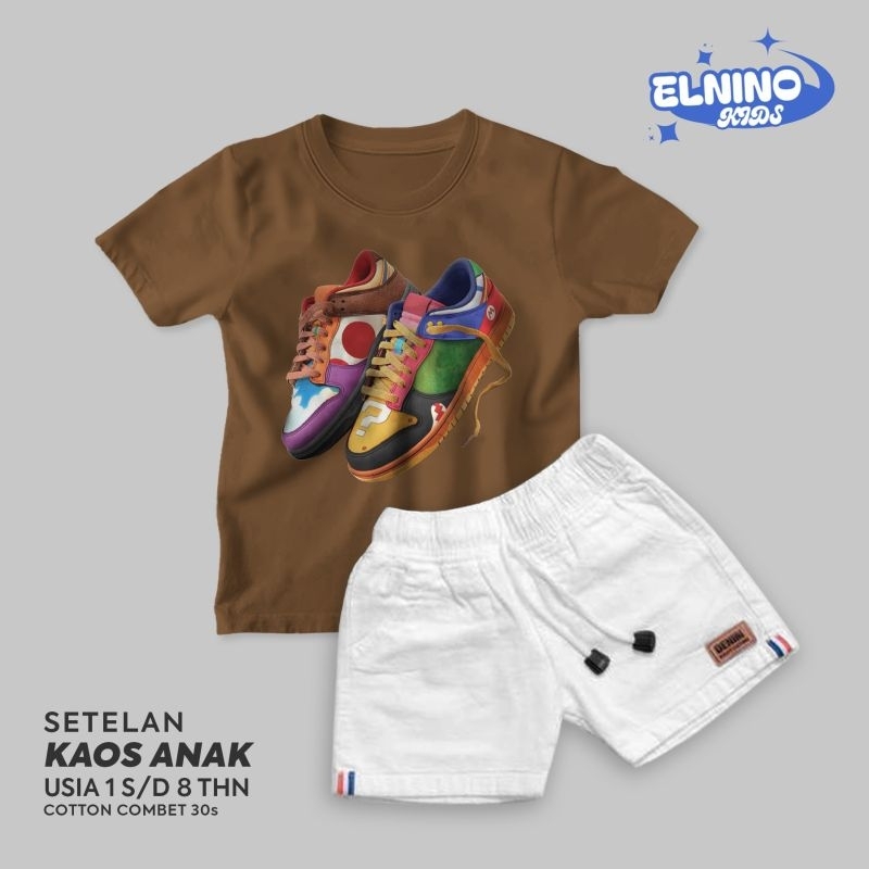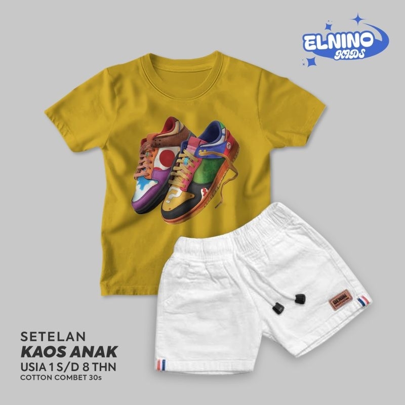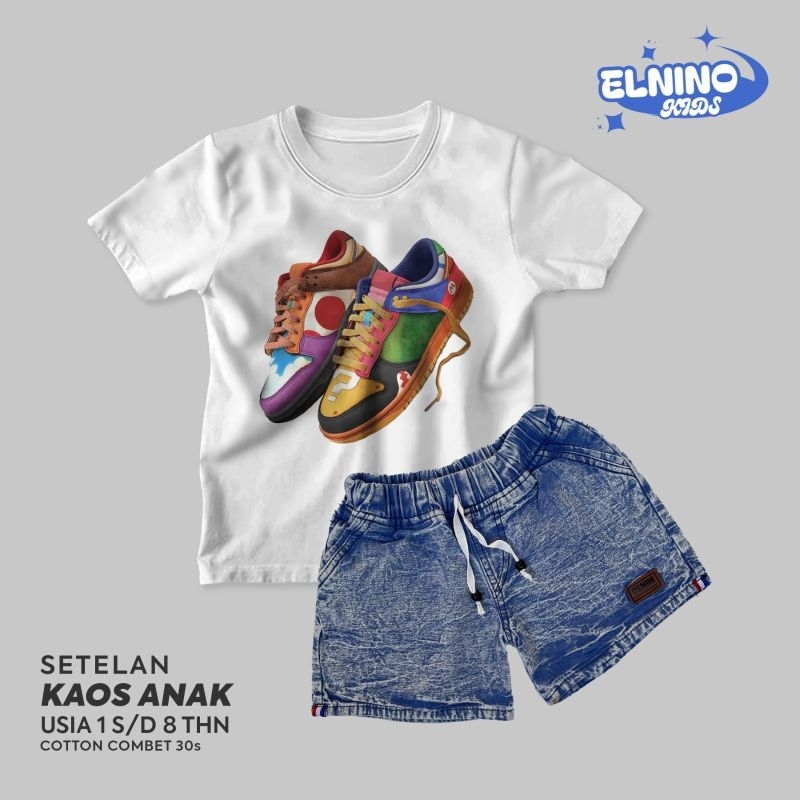 SETELAN Baju AnakSetelan Jeans Anak Usia 1-8 Tahun Laki-laki dan Perempuan Motif Sepatu