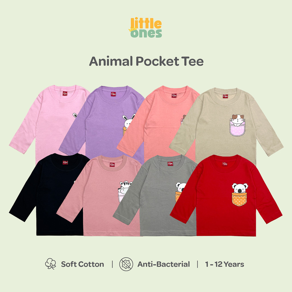 SETELAN Baju AnakLittle ones Kaos Atasan Anak Perempuan Polos Lengan Panjang Gambar Lucu Binatang Animal 1-12 Tahun