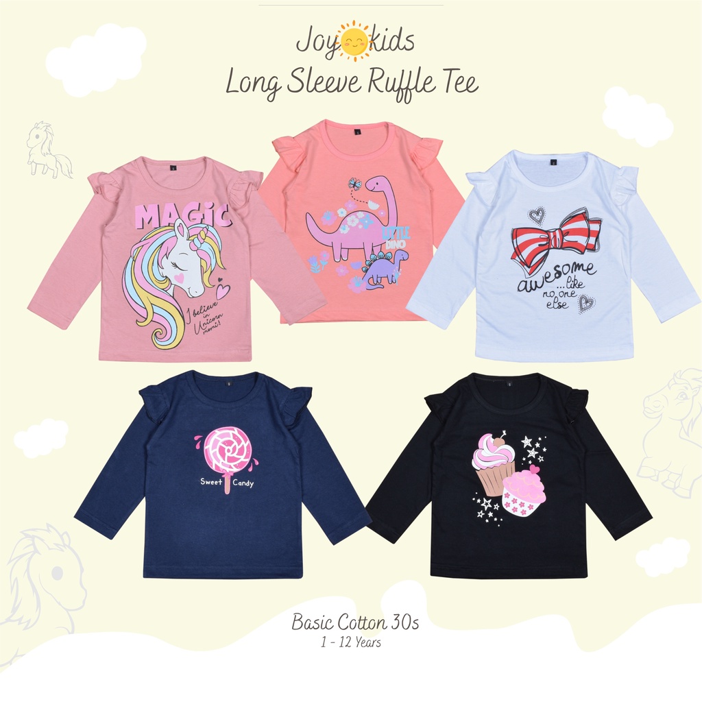 SETELAN Baju AnakJoy Kids Kaos Atasan Anak Perempuan Lengan Panjang Ruffle Premium Unicorn 1-12 Tahun