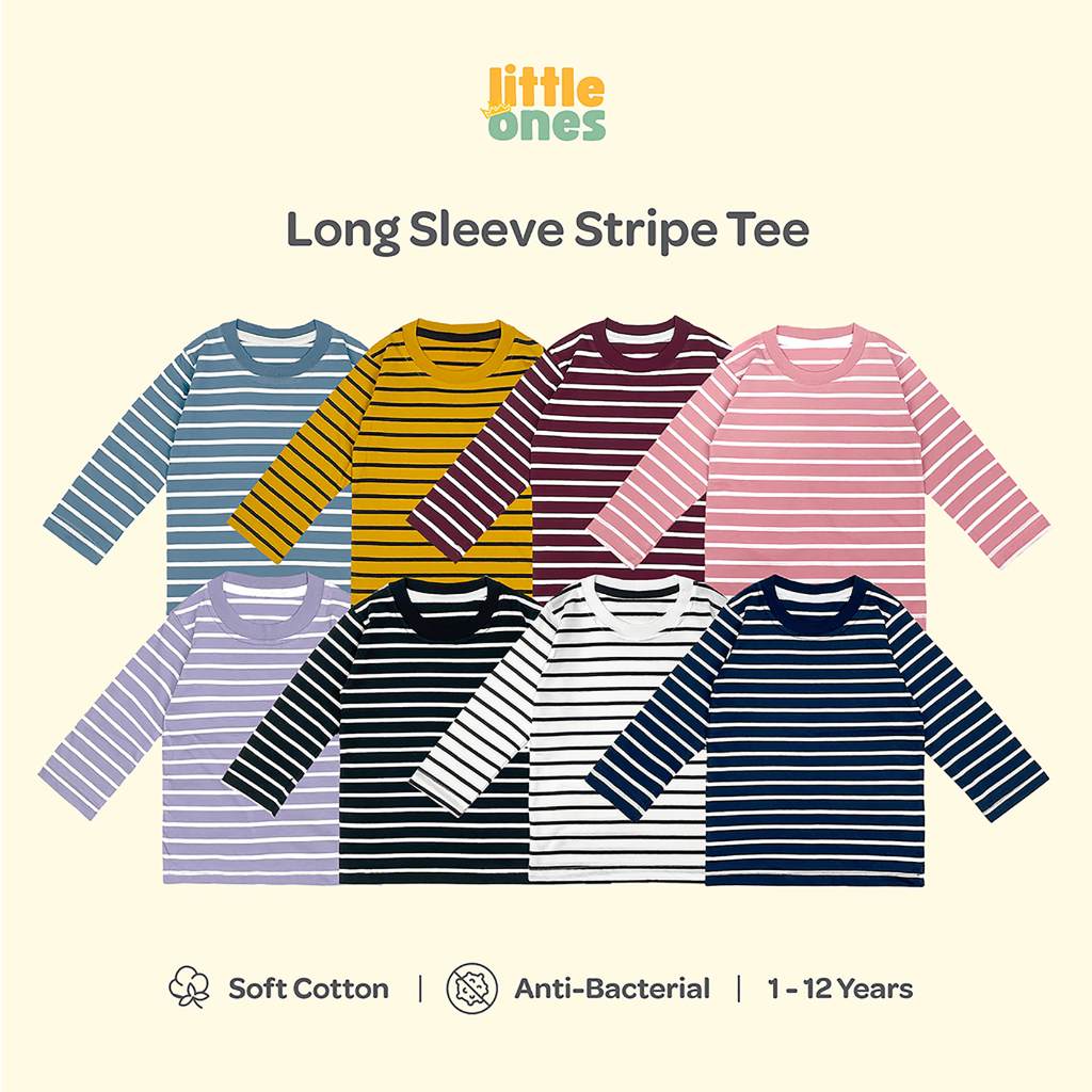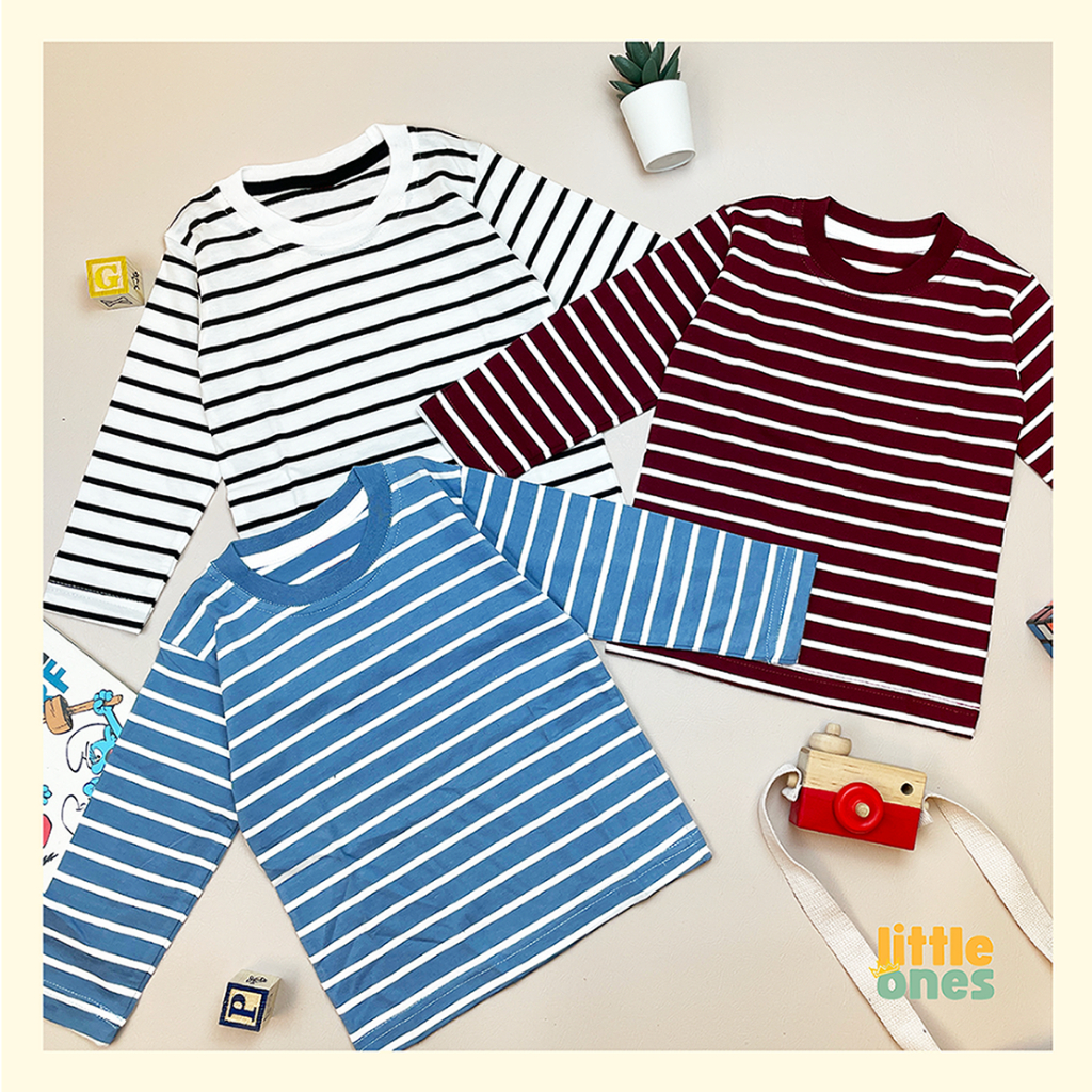 SETELAN Baju AnakKaos Stripe Salur Garis Anak Laki-laki Perempuan Lengan Panjang 1-12 Tahun Katun Premium Little Ones in
