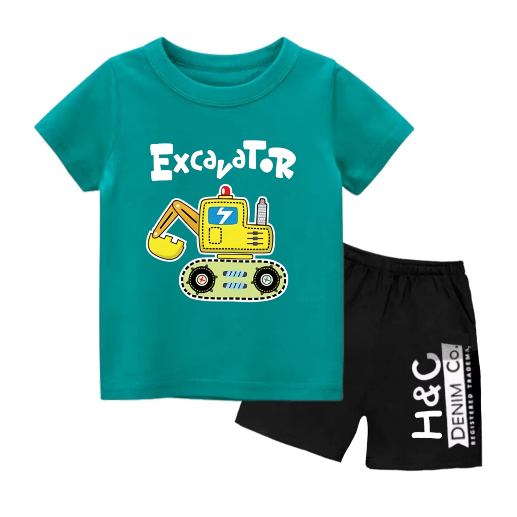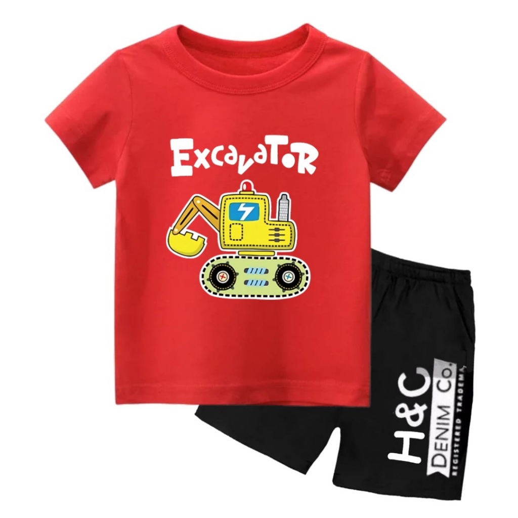 SETELAN Baju AnakSetelan Baju Lengan Pendek SET Pendek Kaos Anak Laki Laki Motif Excavator
