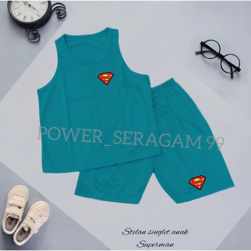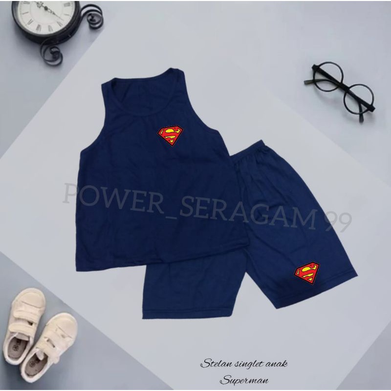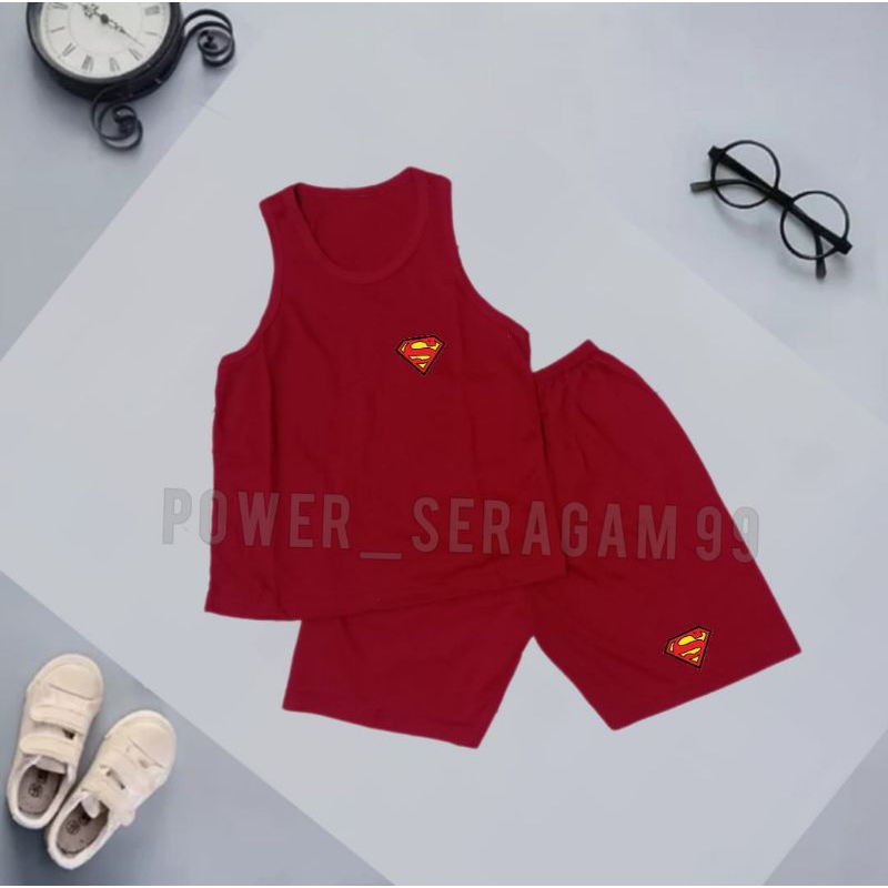SETELAN Baju Anak stelan singlet katun anak motif SUPERMAN / STELAN ANAK SABLON PREMIUM / KAOS SET ANAK TANPA LENGAN / S