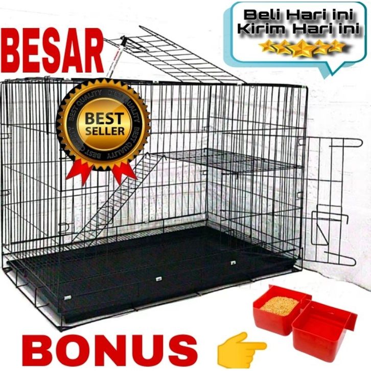 sangkar kucing Tingkat 2 ( 75X50X45 ) BONUS tempat makan 2 pcs