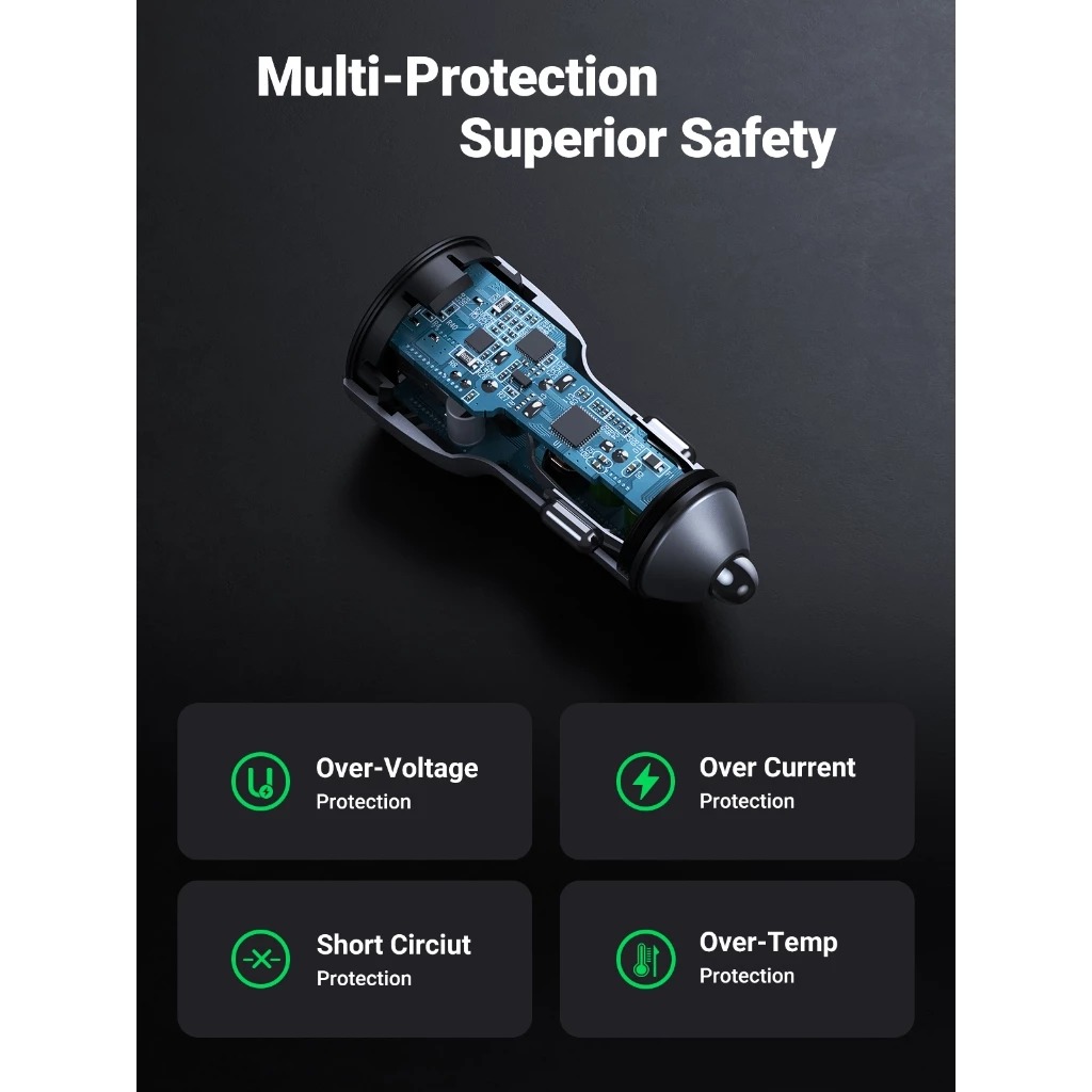 UGREEN Charger Mobil Fast Charging + Kabel iPhone Type C Micro USB 36W-130W / Charger iPhone Mobil Original [GARANSI]