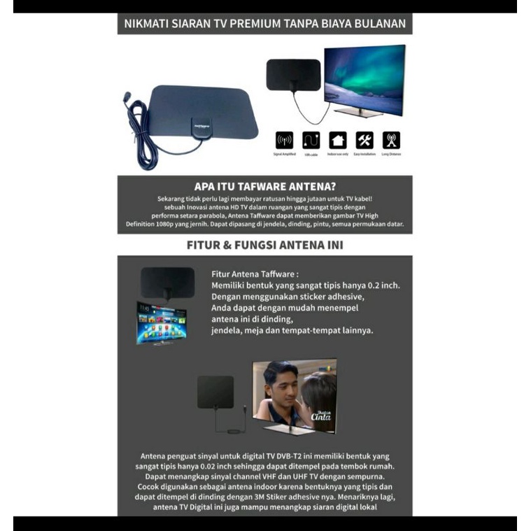 [100 ORIGINAL] ANTENA TV DIGITAL TAFFWARE INDOOR