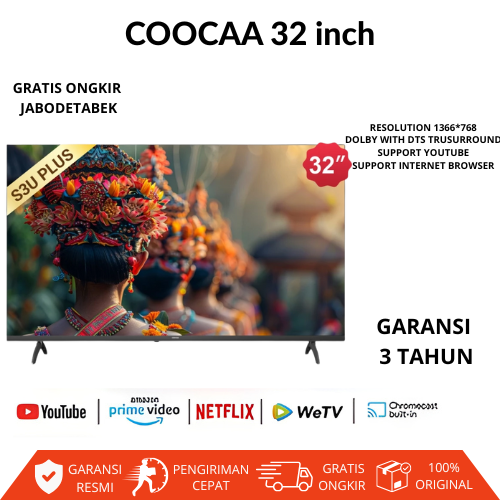 【GARANSI ORI】COOCAA 32 inch S3U Smart TV - Digital TV - Dolby Audio - Youtube - Mirroring - Flick Free #polytron#Xiaomi