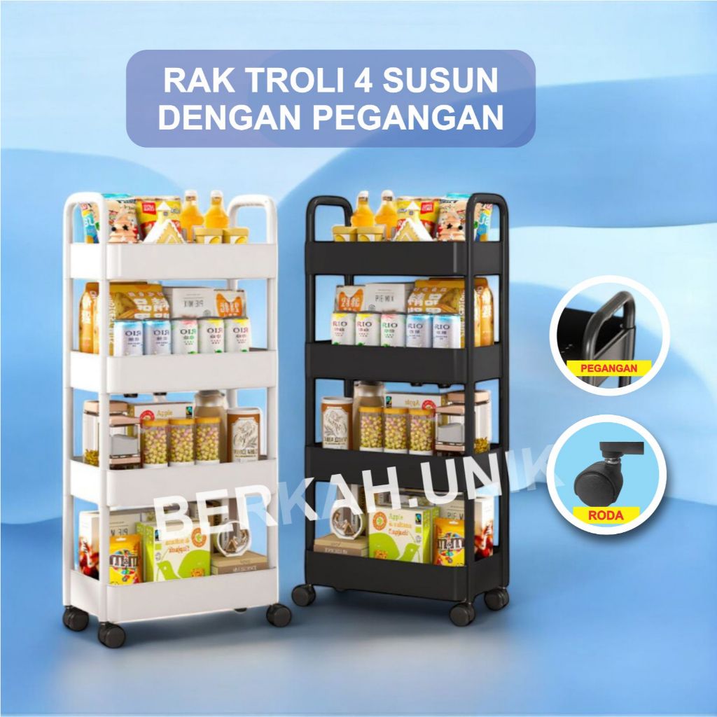 RAK SERBAGUNA /LEMARI SUSUN /RAK PIRING DAPUR /RAK TROLI 4 SUSUN PEGANGAN/RAK SUSUN PLASTIK/RAK BUKU