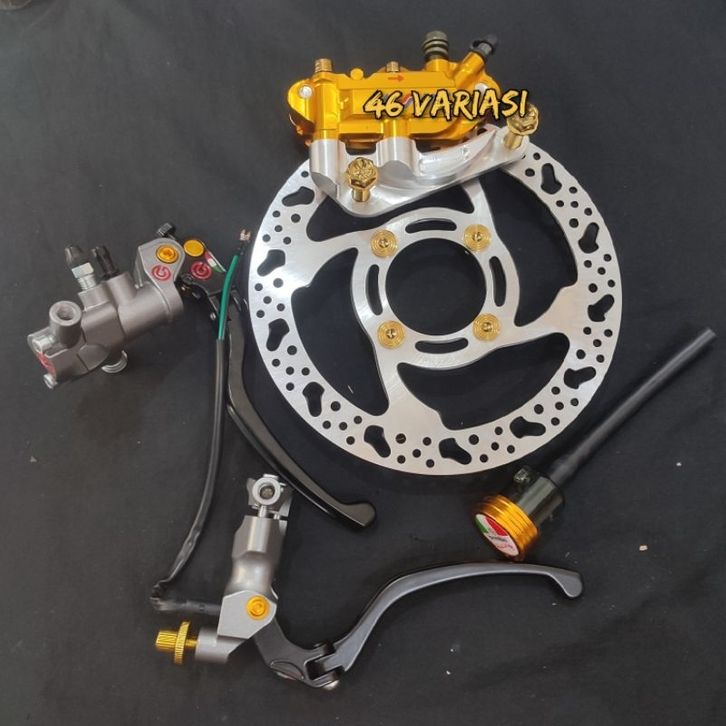 PAKET KALIPER MONOBLOK 4 PISTON NEW DESIGN MIO, FINO CARBU, JUPITER MX, VEGA ZR, JUPITER Z1 + MASTER REM IZUMI