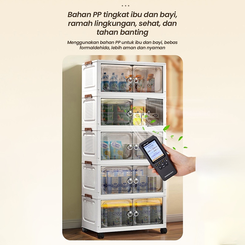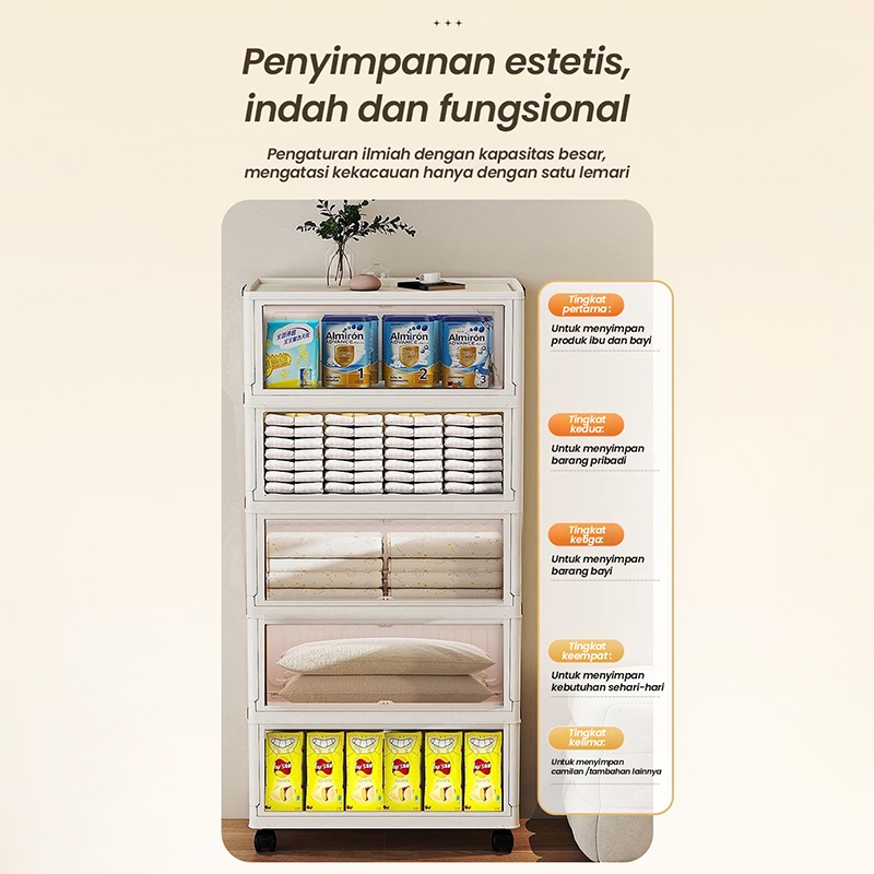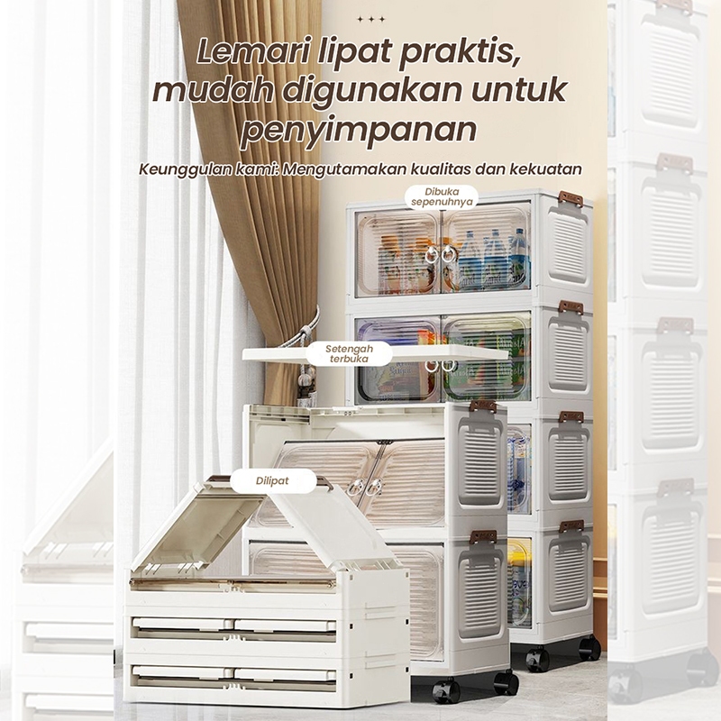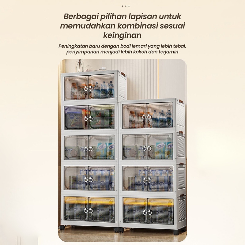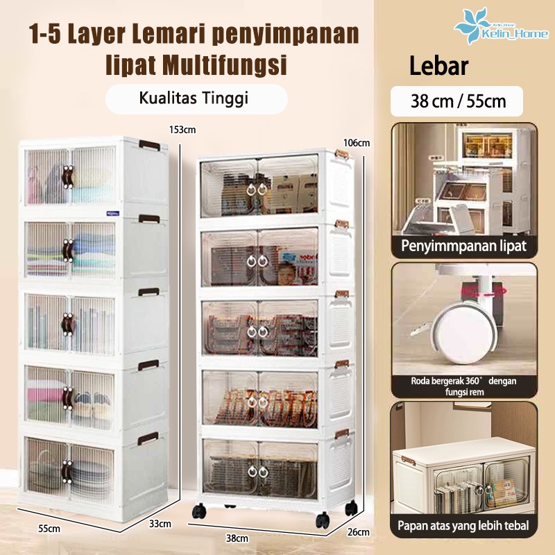 Kelin_home - `1-5 Layer` Lemari penyimpanan lipat Multifungsi`Lemari Plastik Susun Storage Box`Kotak Penyimpanan Pakaian transparan Multi-layer Dengan Roda