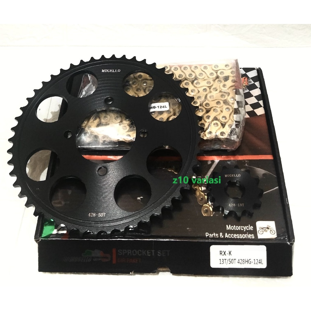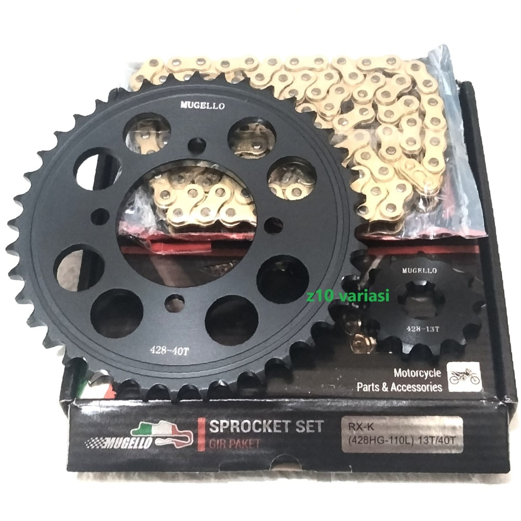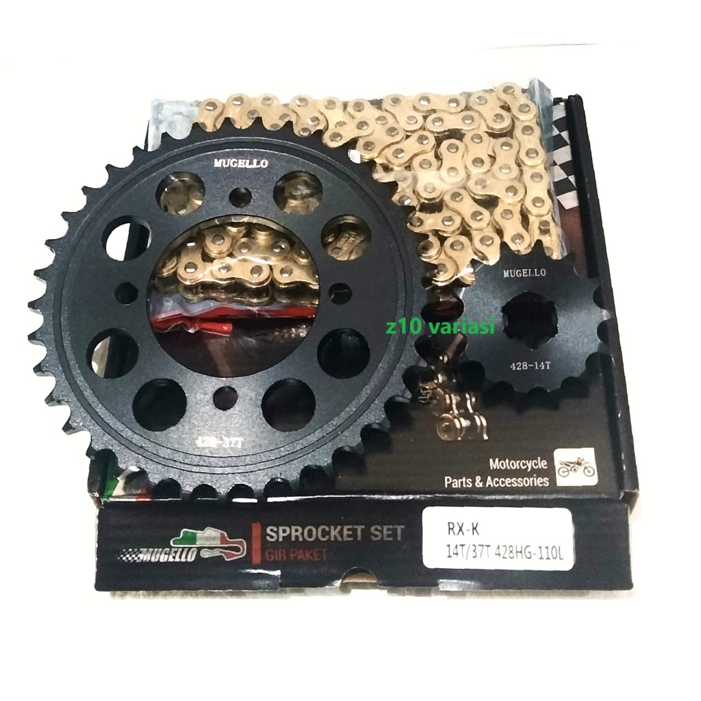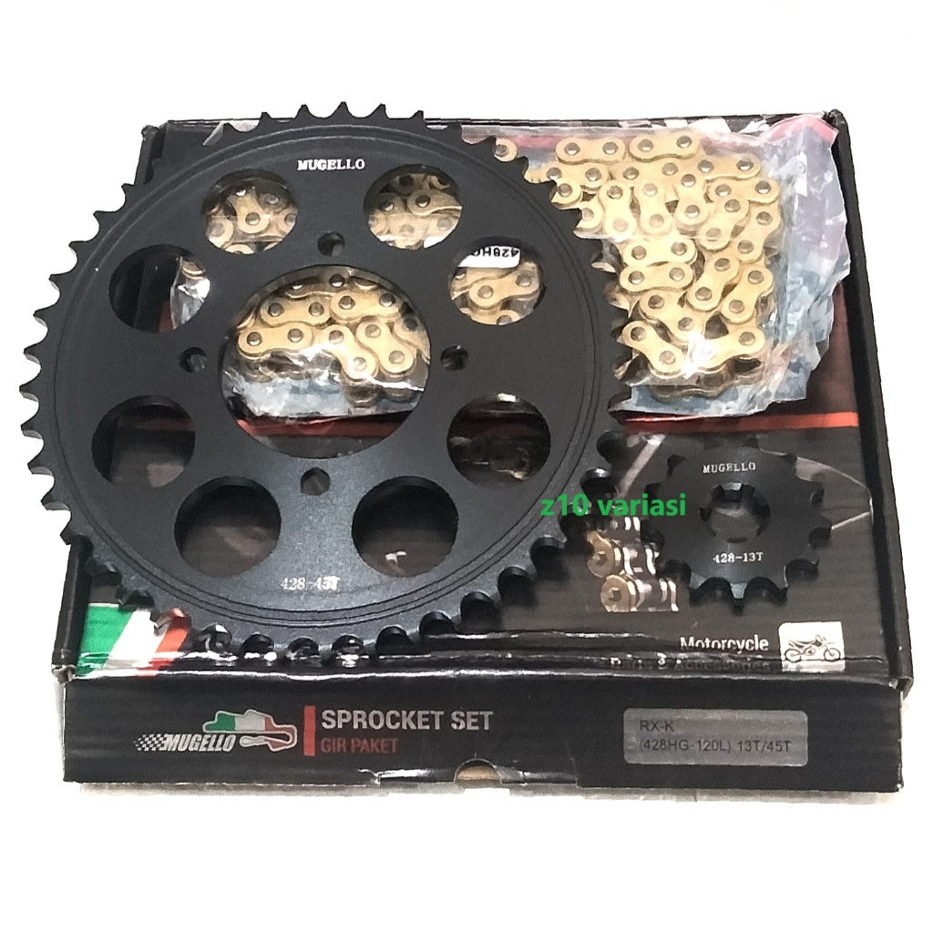 Mugello Gear Paket Set 428HG RX King RXK Jupiter Z Old New Burhan Vega R Old New FizR Gear Depan Belakang Rantai