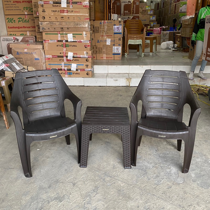 Kurai Teras Plastik PW 678 Kursi Santai Plastik Kursi Taman Kursi Pendek Motif Rotan Kursi Plastik Kursi Healing Napolly