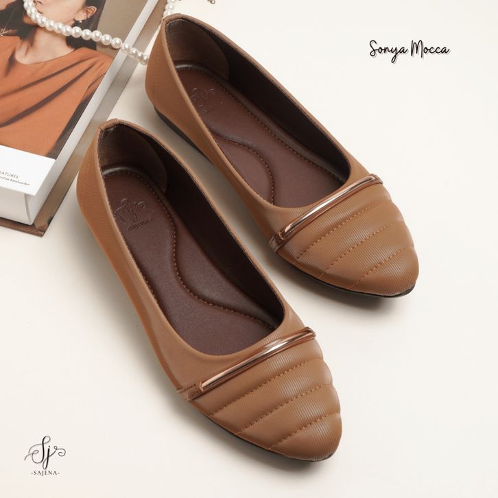 Sajena Sintetis Hitam Sonya Flat Shoes Wanita Sepatu Pantofel