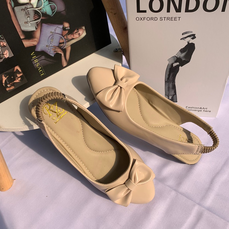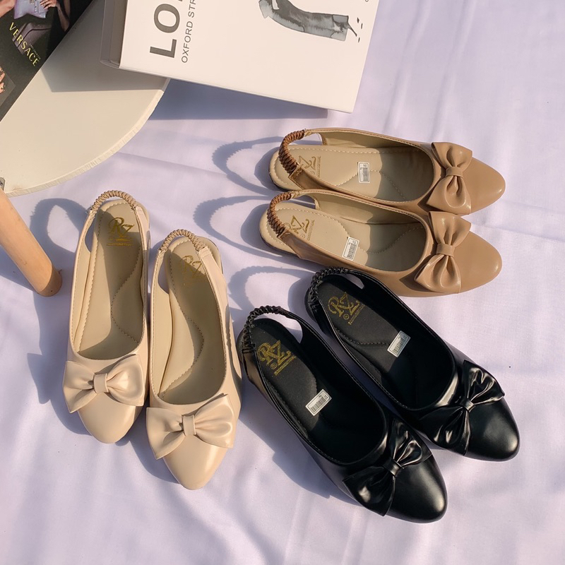 (Gratis Ongkir) Sepatu Sandal Flatshoes REGINA Wanita Rubber Band Back Strap Pita Kupu