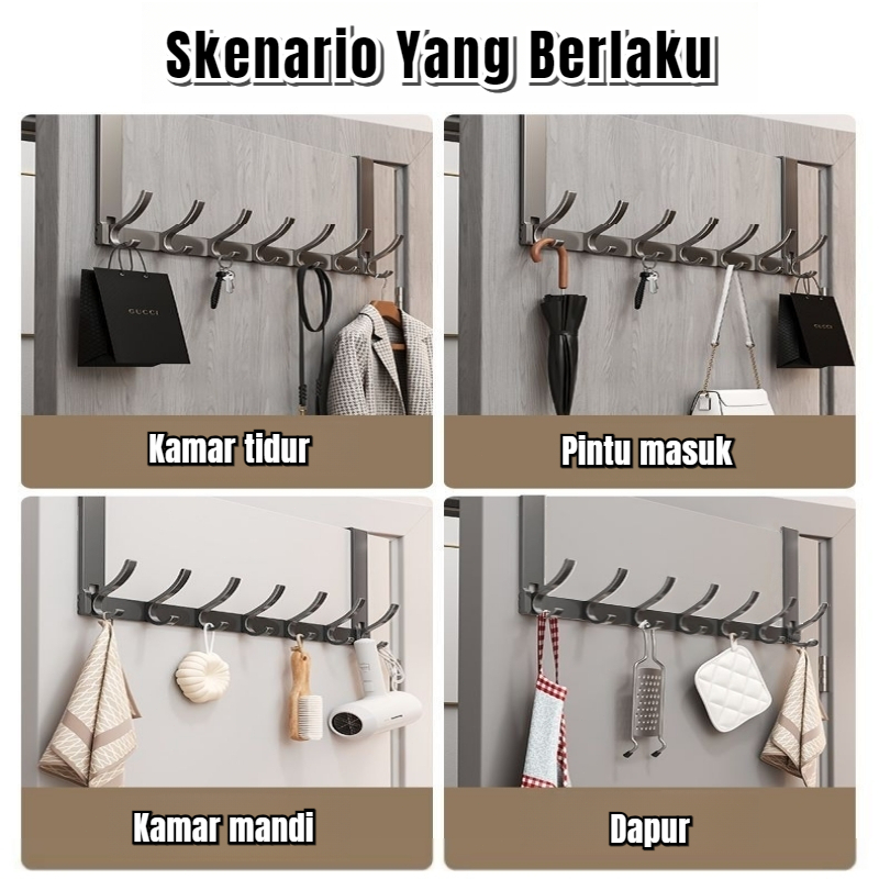 Gantungan Baju Pintu Alumunium Rak Tanpa Paku Kuat Dinding Besar Tebal Premium Gantungan Kamar Tidur Kamar Mandi Door Ho