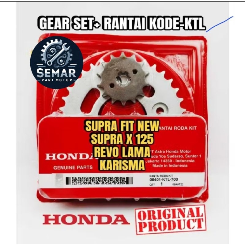 GEAR SET PAKET HONDA SUPRA X 125, KARISMA, SUPRA FIT NEW, REVO LAMA KODE KTL GAR SET SUPRA X 123 KTL