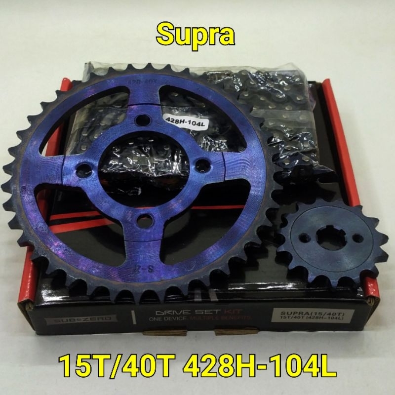Subzero Gear Set Supra X Fit XX Old Grand Legenda Paket lengkap Gear Depan Belakang dan Rantai 15T 40T 428H 104L