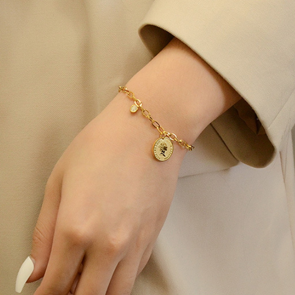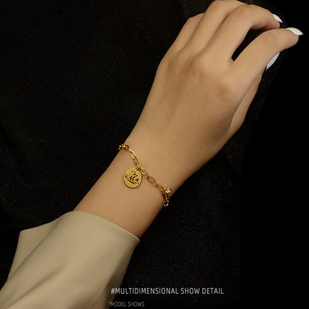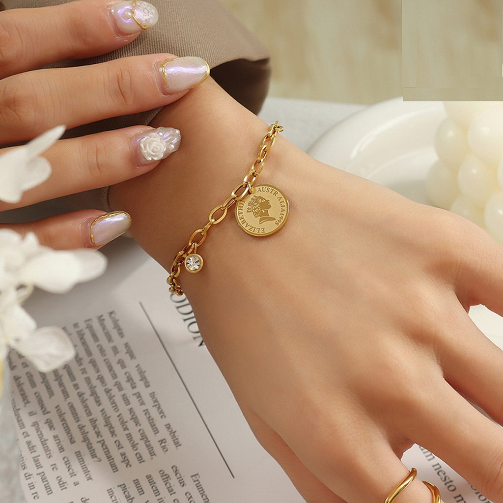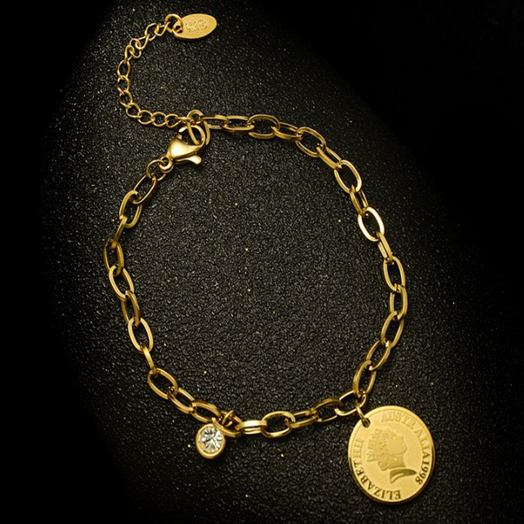 GL Jewellery (Garansi 2 Tahun) Gelangg Titanium Wanita 316L Anti Karat Lapis Ems 18 K Import G07