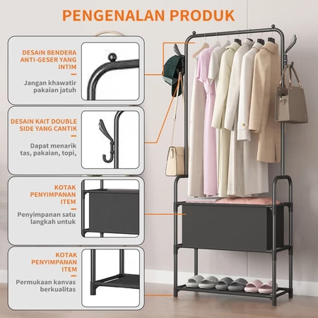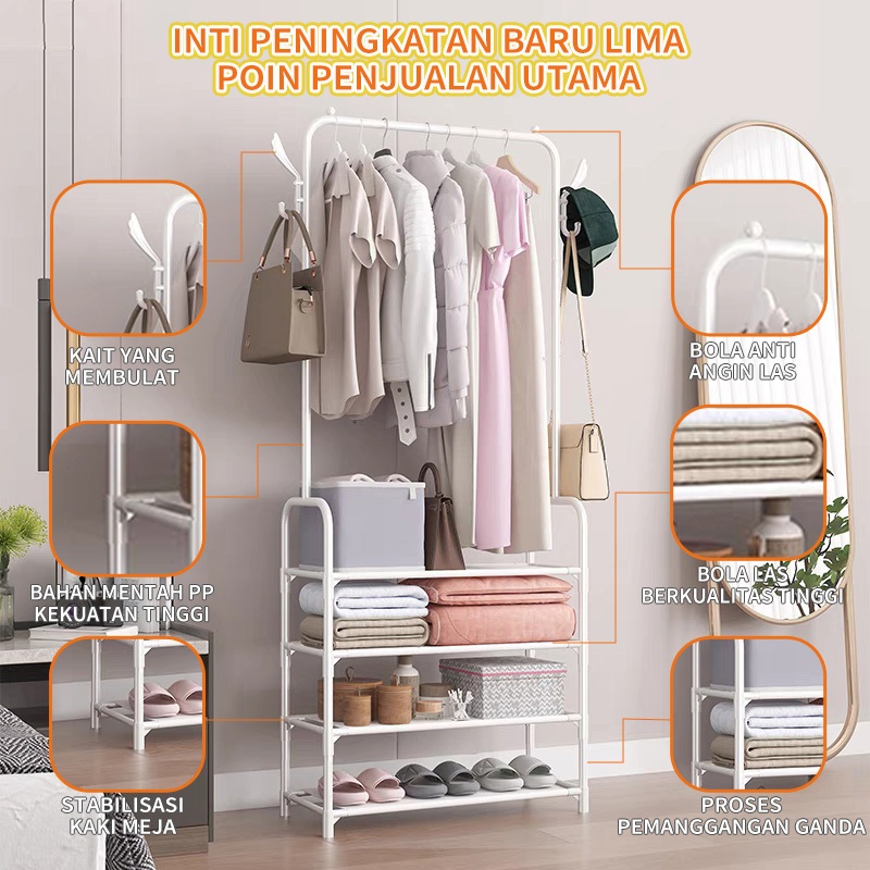 Rak Gantung Baju Stand Hanger Gantung Clothes Hanging Rack Rak Sepatu 3 Susun Lemari Pakaian Sederhana Rak Penyimpanan Portable