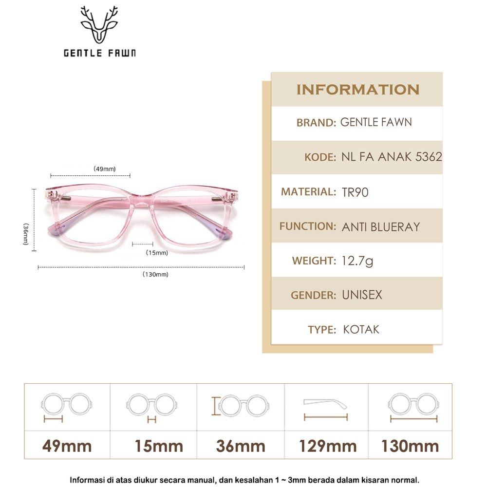 Gentle Fawn Kacamata Anak Antiradiasi Blueray Sinar Biru Bahan TR90 Lembut Bentuk Kotak Style Fashion Anak Perempuan Dan
