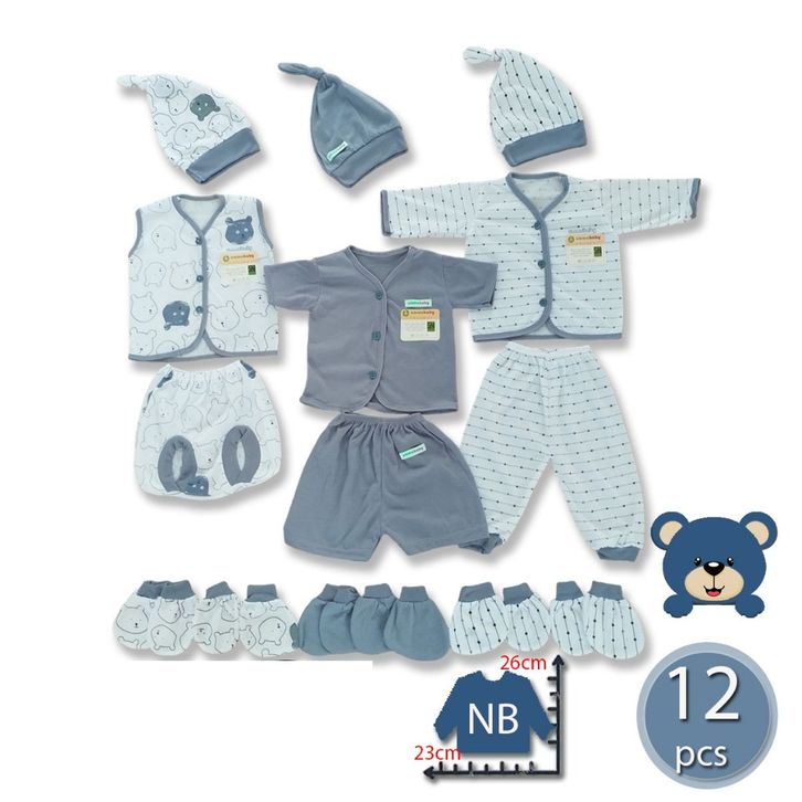 Set Baju New Born 12 Pcs Perlengkapan Bayi Baru Lahir Setelan Anak Bedong Set Popok Sarung Tangan Kaki Topi Termurah