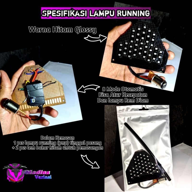 Lampu Stoplamp Running Beat Deluxe/Cbs dan Street, 8 mode otomatis dan ketika di rem nyala diam semua. (DELUXE)