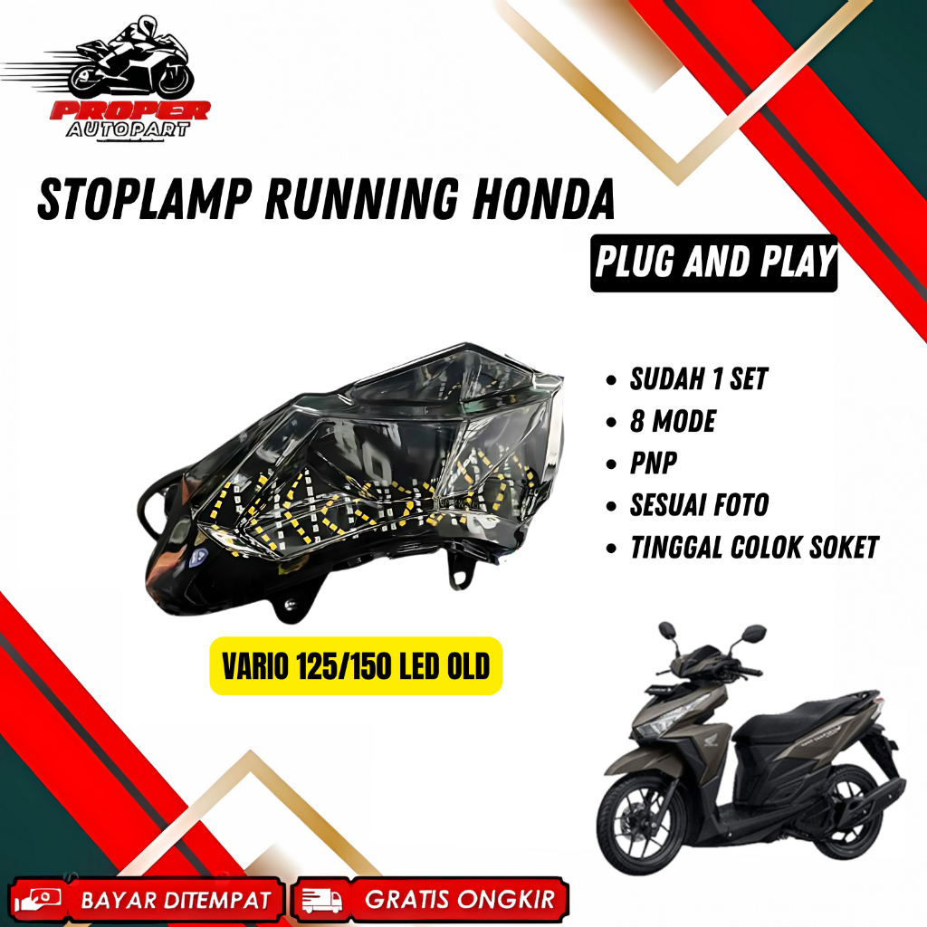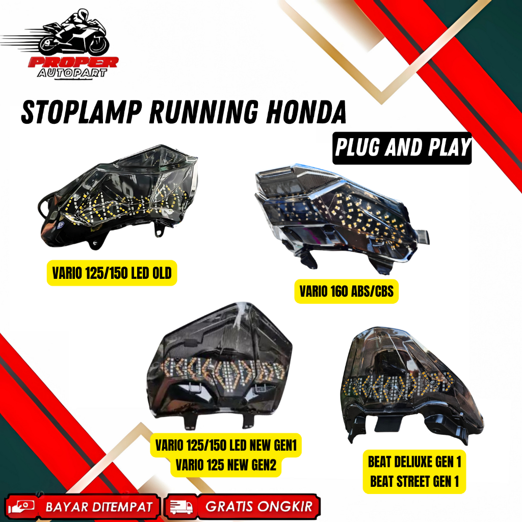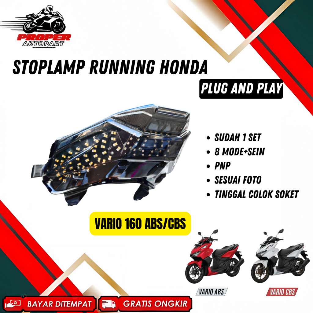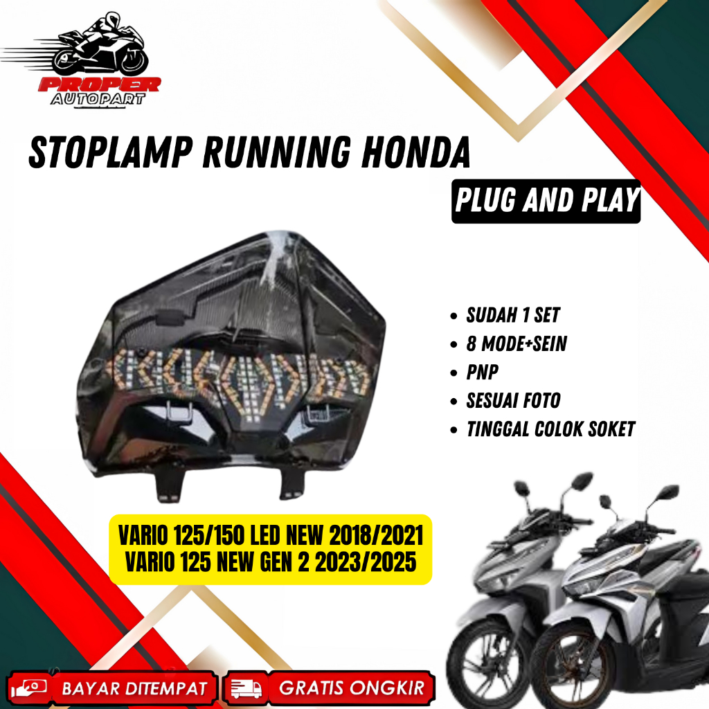 STOPLAMP RUNNING VARIO125/150/160 STOPLAMP BEAT DELUXE VIETNAMPARTS RUNNING 8 MODE MIKA SMOKE VARIO