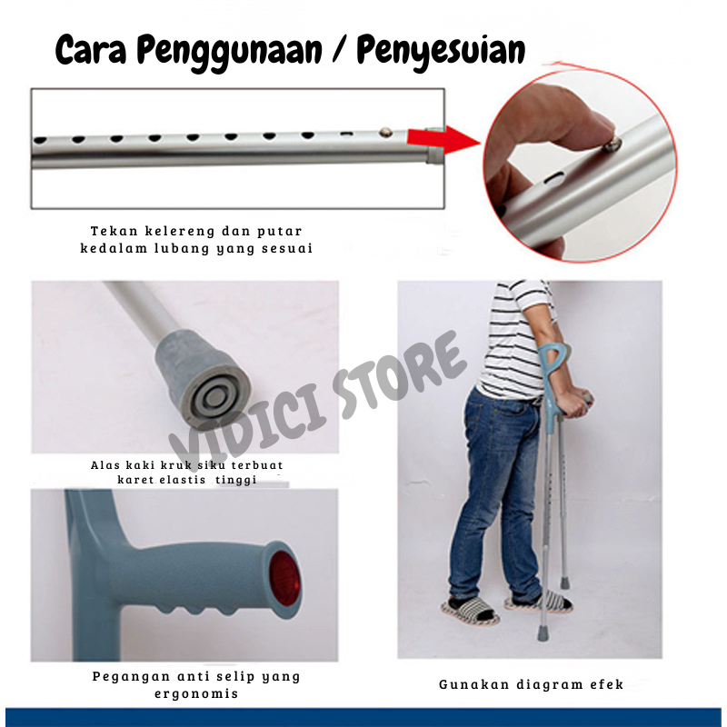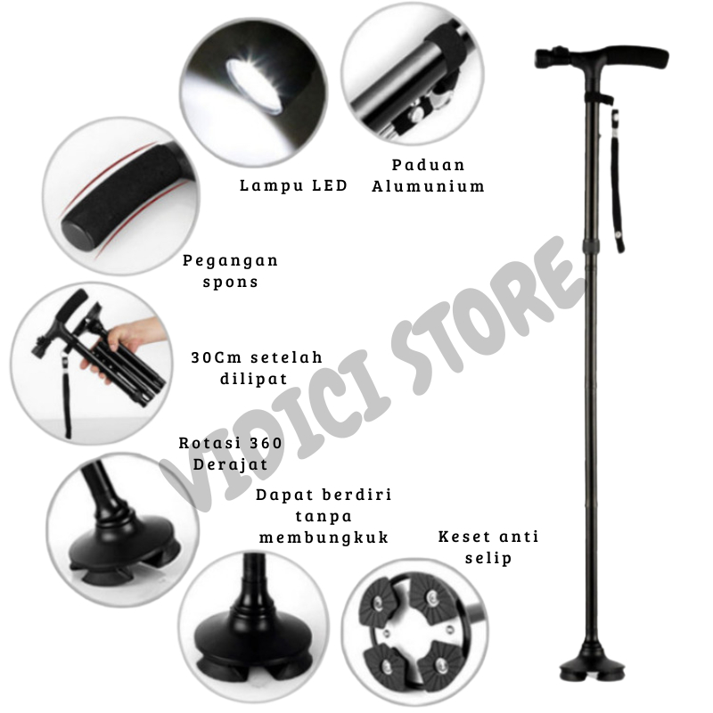 Tongkat Lipat/Alat Bantu Jalan 1 Kaki/Tongkat Portabel/Bahan Stainless