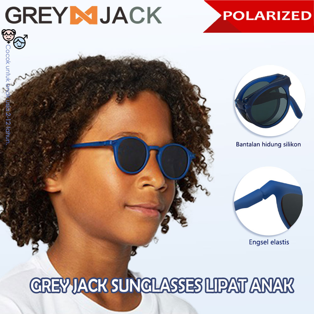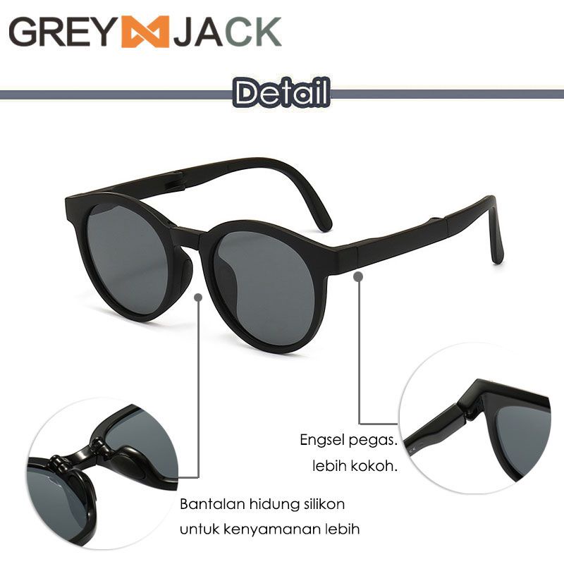 Grey Jack Kacamata Anak Sunglasses Foldable Hitam Anti Uv Bisa Di Lipat Model Bulat Tr90 Ringan Fashion Anak Unisex 078