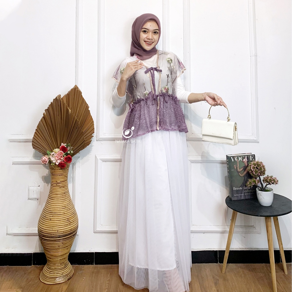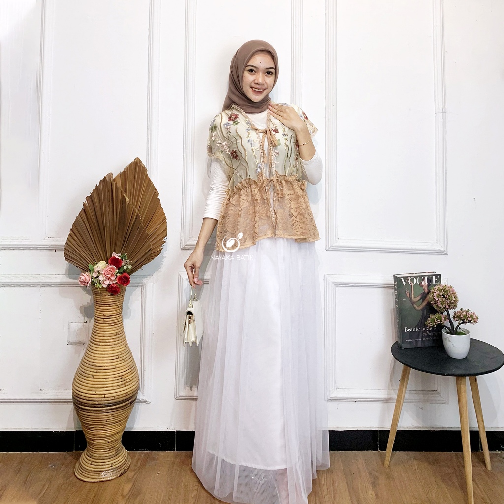 (FLASH SALE)NEW ARRIVAL NAYAKA BATIK - Vest Wanita Modern Kekinian ABELA Rompi Tali Brukat Gardenia Mix Cord Premium