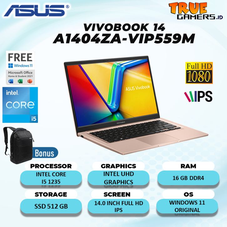 LAPTOP ASUS v1v0BOOK 14 A1405ZA & A1404ZA I5 GEN 12 16GB 512SSD W11+OHS 14.0 WUXGA GARANSI RESMI